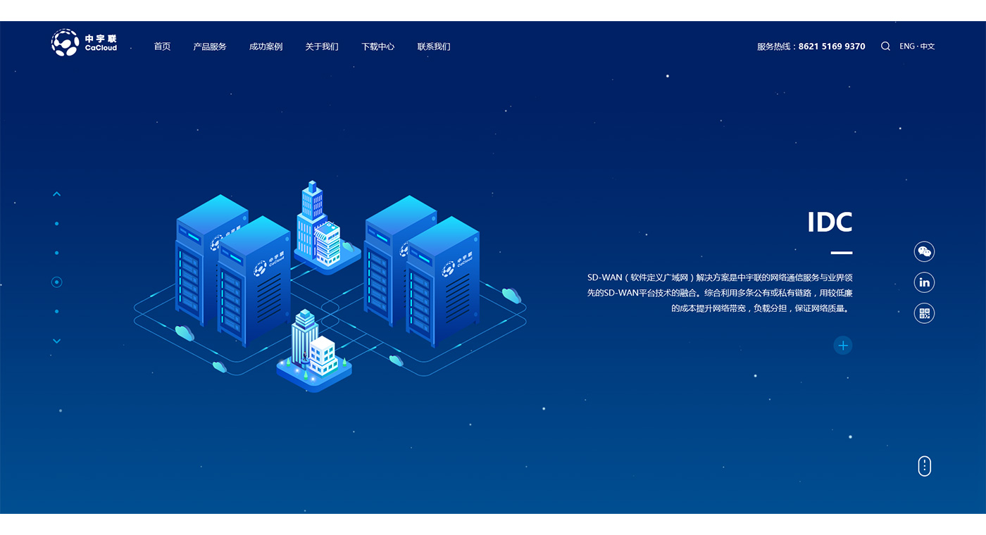 體現(xiàn)互聯(lián)網(wǎng)科技,網(wǎng)站整體以藍(lán)色為主色調(diào),通過抽象2D場(chǎng)景來體現(xiàn)公司業(yè)務(wù)特點(diǎn)。